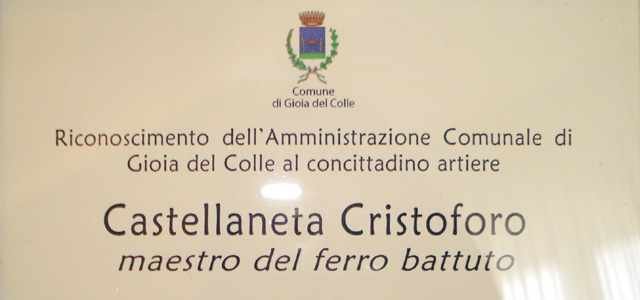 Sabato 17 aprile alle ore 11.00, nella sala consiliare del Municipio di Gioia del Colle, l’Amministrazione comunale ha indetto una cerimonia celebrativa perseguendo il desiderio di voler onorare e ricordare degnamente i nostri concittadini che durante il loro vissuto si sono distinti singolarmente nella professione. Questo è il motivo per cui l’attuale Amministrazione ha deliberato di intitolare ai più noti artieri del passato le strade che attraversano la nuova zona industriale di Gioia del Colle.