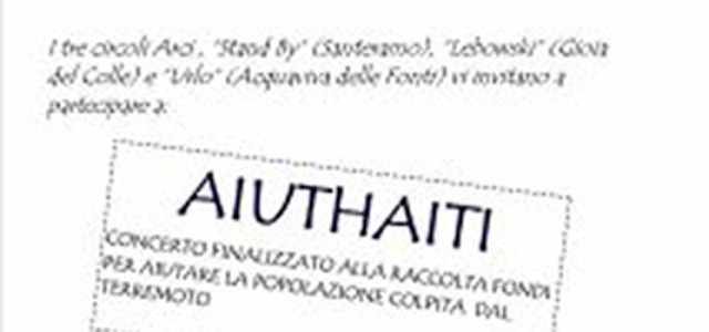 I tre circoli Arci “Stand by” (Santeramo in Colle), “Lebowski” (Gioia del Colle) e “Urlo” (Acquaviva delle Fonti) vi invitano a partecipare al concerto AIUTHAITI, organizzato per raccogliere fondi da destinare alla popolazione recentemente colpita dal terremoto.