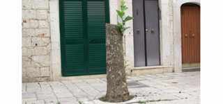 Nella foto un virgulto attesta che vi è ancora vita nel tronco “decapitato” in via Di Vittorio, nonostante tutto.
