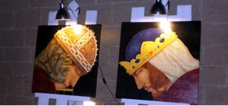 Immagini, inoltre, di forte persuasione sono quelle esposte per l’occasione dall’artista Gino Donvito. C’è una forte attenzione per gli intensi colori, per l’indagine dei dettagli, per i particolari fisionomici, per il trattamento del legno utilizzato rigorosamente in maniera medioevale.