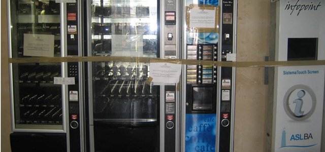 Anche nell’Ospedale Paradiso e nella ASL BA (ex INAM) di Gioia del Colle sono stati sequestrati i distributori di bevande e alimenti che la Sgd Vending aveva installato, dal 2008, in tutte le strutture ospedaliere e territoriali dell’Asl Bari.