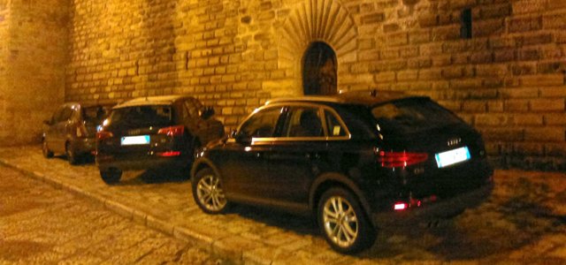 Su segnalazione di alcuni cittadini sono state infatti pubblicate le foto che segnalano una multipla parcheggiata sul sagrato della Chiesa Madre, presumibilmente sabato 20 luglio, in ore notturne, e ben tre auto in Piazza dei Martiri, praticamente sotto al Castello.