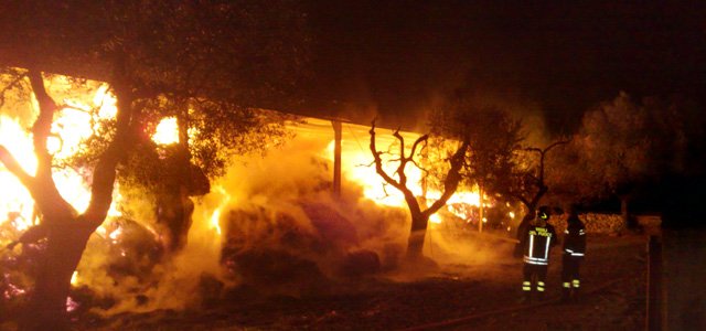 ROGHI NELLA NOTTE. IN FUMO TONNELLATE DI FORAGGIO